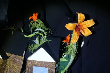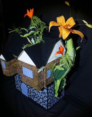 "Something Must Give- And It Will Not Be Me" is a puppet piece about belonging- centering a fantastical creature, Cypress, returning to their childhood home after out-growing it. Using rod puppetry, shadow puppetry and direct manipulation techniques, this performance illustrates the struggle between family members as they learn how to coexist under the same roof once more.